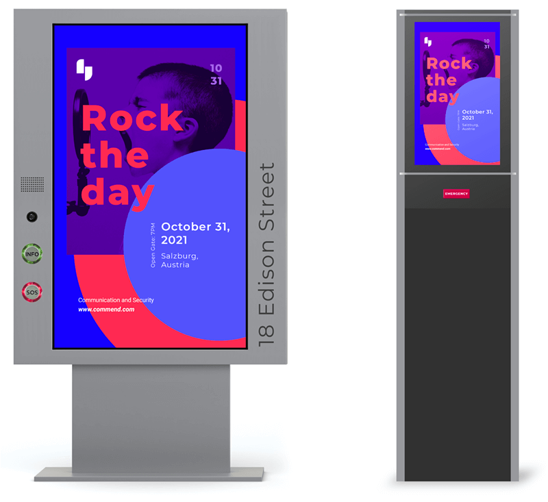 Legfrissebb hírek és eseményhirdetések, kereskedelmi ajánlatok, kiegészítve időjárási, közlekedési és utazási információkkal: a város és környéke látogatóbarát reflektorfénybe állításának lehetőségei rendkívül sokoldalúak. A Commend Smart City megoldásait kifejezetten úgy tervezték, hogy ezt a lehetőséget optimálisan kihasználják - például az információs kioszkokba vagy terminálokba teljesen integrált audio/video Intercom segítségével. Az eszközök kényelmes interaktív kijelzőkkel rendelkeznek, és közvetlen híváskapcsolatot biztosítanak, például egy idegenforgalmi irodához vagy segélyhívó központhoz - mindezt egyetlen gombnyomással (vagy érintéssel).