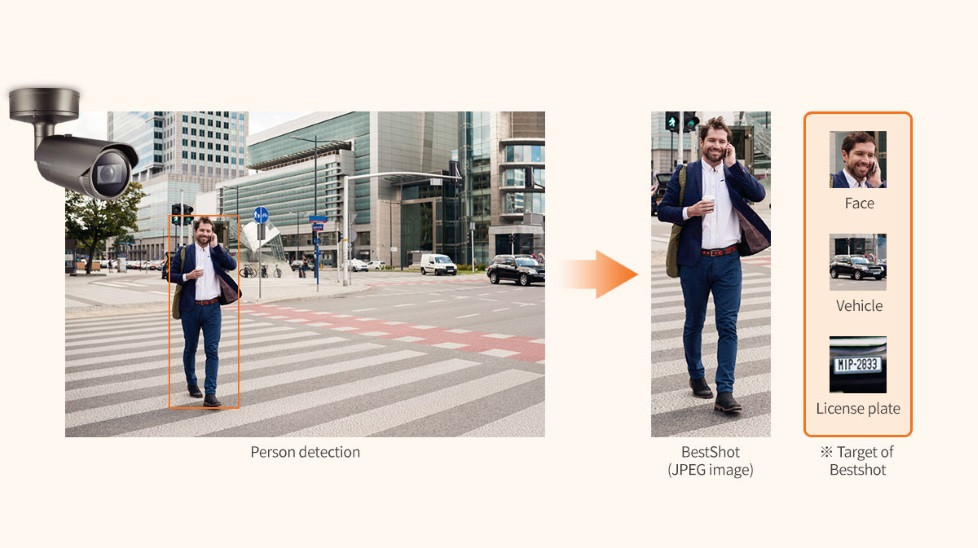A legjobb felvétel funkció biztosítja, hogy csak a rögzített tárgyakról készült legmegfelelőbb képek kerüljenek a szerverre. Minden kép akár 4K minőségben is vágható, a címkézett attribútumokkal ellátott metaadatokkal együtt. A felhasználóknak lehetőségük van a képfelbontást 2MP-re állítani a teljes videó streaminghez, vagy a legjobb felvétel funkciót használni a sávszélesség és a tárolási kapacitás minimalizálása érdekében.