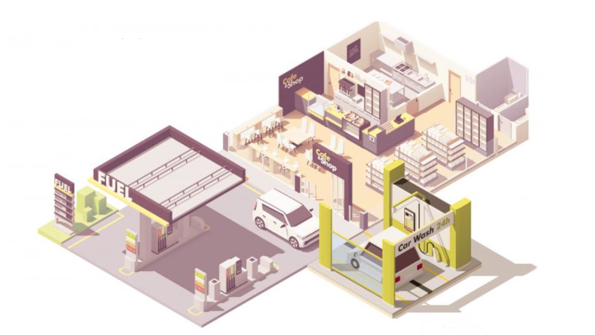 A benzinkutak üzletei jellemzően már nem csupán üzemanyagot és alapvető tartozékokat (motorolaj, ablaktörlőlapát) árusítanak, hanem számos kapcsolt termékcsoport és szolgáltatás is elérhető az állomásokon. Autómosó, elektromos töltőfejek, de akár élelmiszerbolt is.