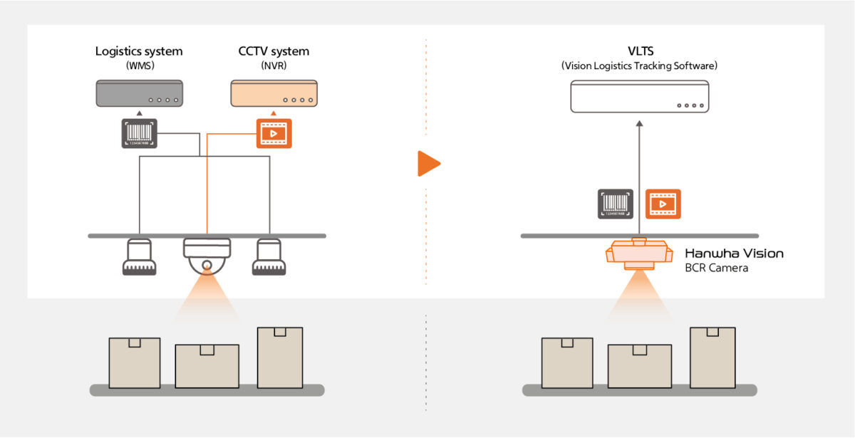 Az integrált logisztikai rendszerrel (WMS) és CCTV-rendszerrel (NVR) rendelkező Hanwha Vision VLTS lehetővé teszi az operátorok számára, hogy a számla vonalkódjának egyszerű beolvasásával könnyen nyomon kövessék a csomagot és hozzáférjenek a videófelvételekhez.