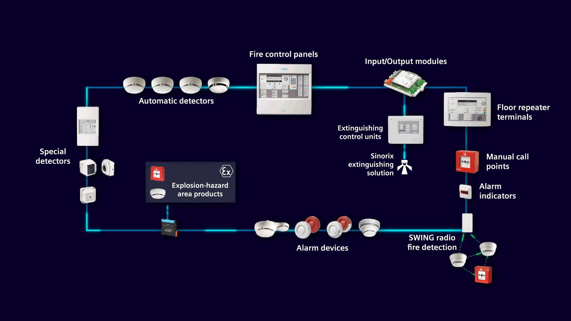 Az intelligens Sinteso™ érzékelők eltárolják, összehasonlítják, valamint a különböző tárolt minták alapján kiértékelik az érzékelt tűzjellemzőket. Ha tüzet érzékelnek, akkor az információt továbbítják a tűzjelző központ felé, amely elindítja a tűzvédelmi vezérléseket. Működés közbeni hiba esetén is garantált a meghibásodott eszköz kezelése úgynevezett “csökkentett” üzemmódban.