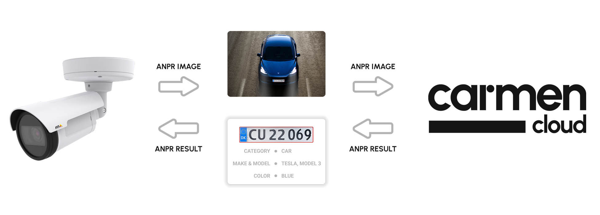 Az új Carmen® Axis alkalmazással a rendszámfelismerés és az MMR (járműgyártmány- és modellfelismerés) közvetlenül a kamerán fut, így egyszerűbb, hatékony alternatívát kínál, amely csökkenti az infrastruktúra költségeit.