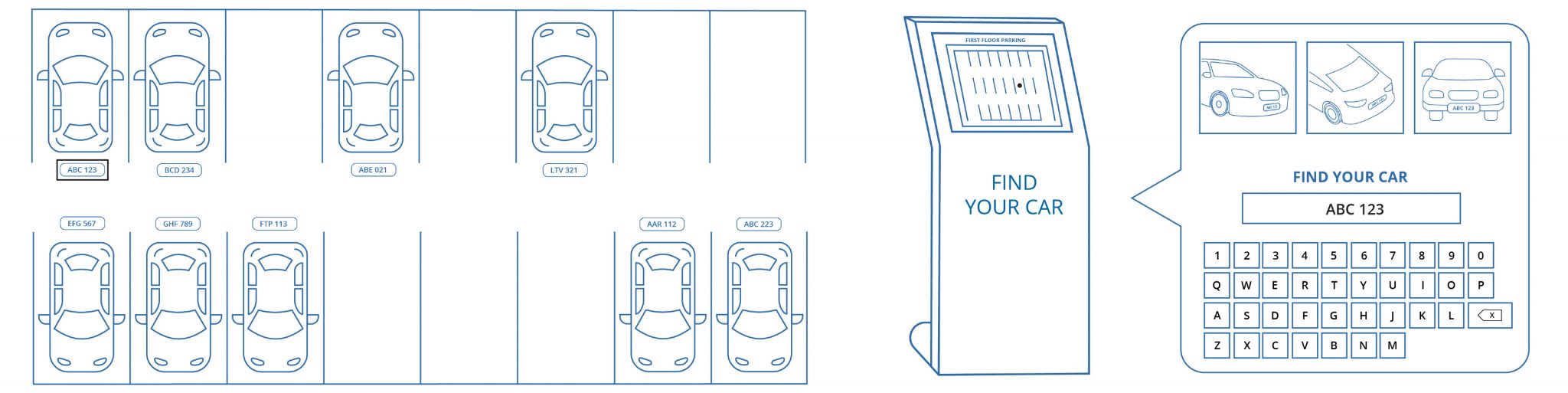 Find Your Car terminál - egy padlóra állítható információs kioszk, amelyet arra terveztek, hogy segítsen az embereknek megtalálni az autójukat egy parkolóban.